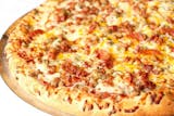 Canadian bacon, sausage, beef, pepperoni, bacon, cheddar & mozzarella cheese.