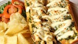 With melted mozzarella, lettuce, tomatoes & creamy italian dressing.